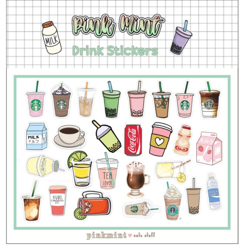 Jia glossy stiker tumblr aesthetic/ stiker drinks minuman boba.
